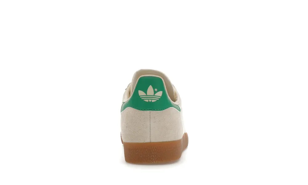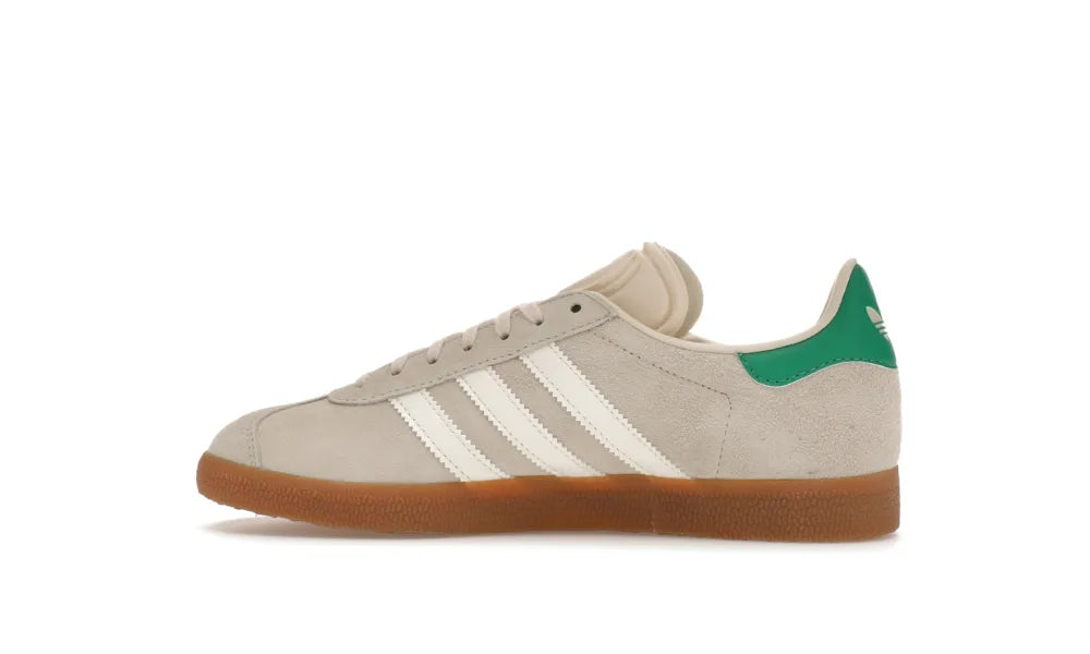 Die adidas Gazelle wunderweiß grün Naturgummi (Damen) verleiht der klassischen Gazelle-Silhouette eine neutrale Colorway aus Wunderweiß und Cremeweiß mit grünen Akzenten.