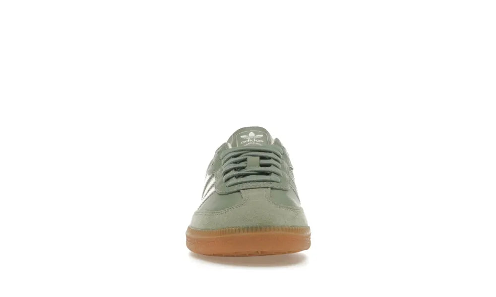 Der adidas Samba OG Silver Green Womens kombiniert den klassischen Samba-Stil mit satten neutralen Farben. Er präsentiert sich mit der bewährten Gummisohle der Marke und einem Obermaterial, für das Veloursleder verwendet wurde.