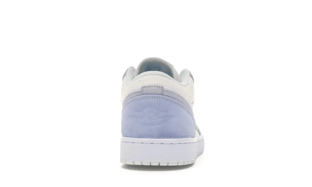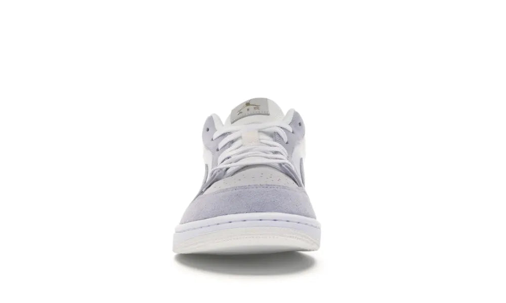 Der Jordan 1 Low Paris verfügt über ein Obermaterial aus Textil, Leder und Veloursleder in Weiß, Sky Grey und Football Grey, wobei das Glattleder an den Quartier-Panels des Schuhs in Weiß gehalten ist. Sowohl der Kragen als auch die Zunge der Silhouette sind mit sportlichen Textilien ausgestattet und ein geprägtes Air Jordan-Logo mit einem grauen Nike Swoosh vervollständigt das Design.