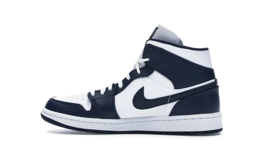 Der Air Jordan 1 Mid White Metallic Gold Obsidian ist eine neu eingefärbte Version des OG Air Jordan 1.