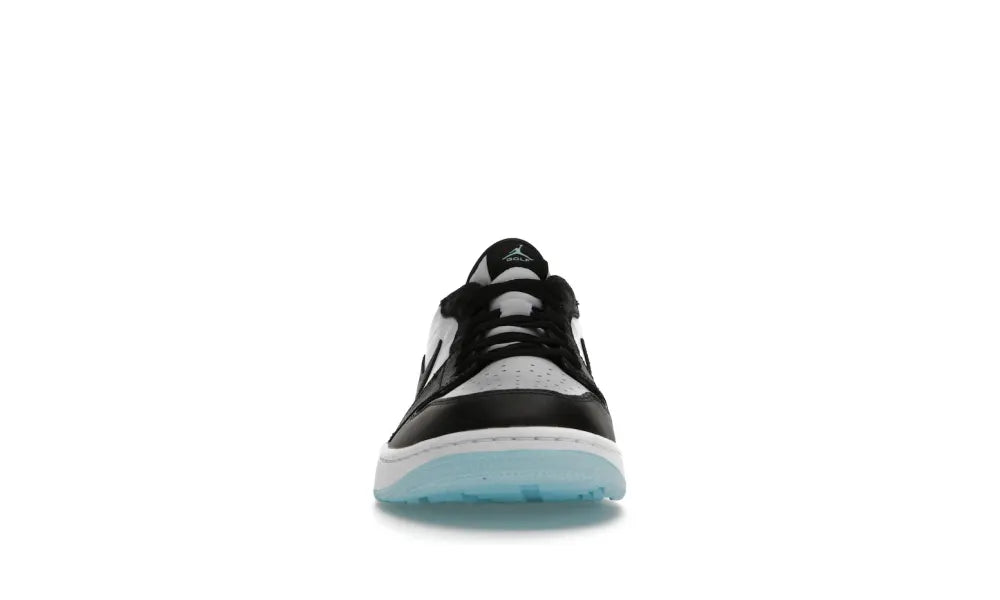 Der Air Jordan 1 Retro Low Golf Copa hat dasselbe Color Blocking wie der Air Jordan 1 Black Toe. Das Obermaterial besteht hauptsächlich aus weißem und schwarzem Leder mit Akzenten in der Farbe Copa.