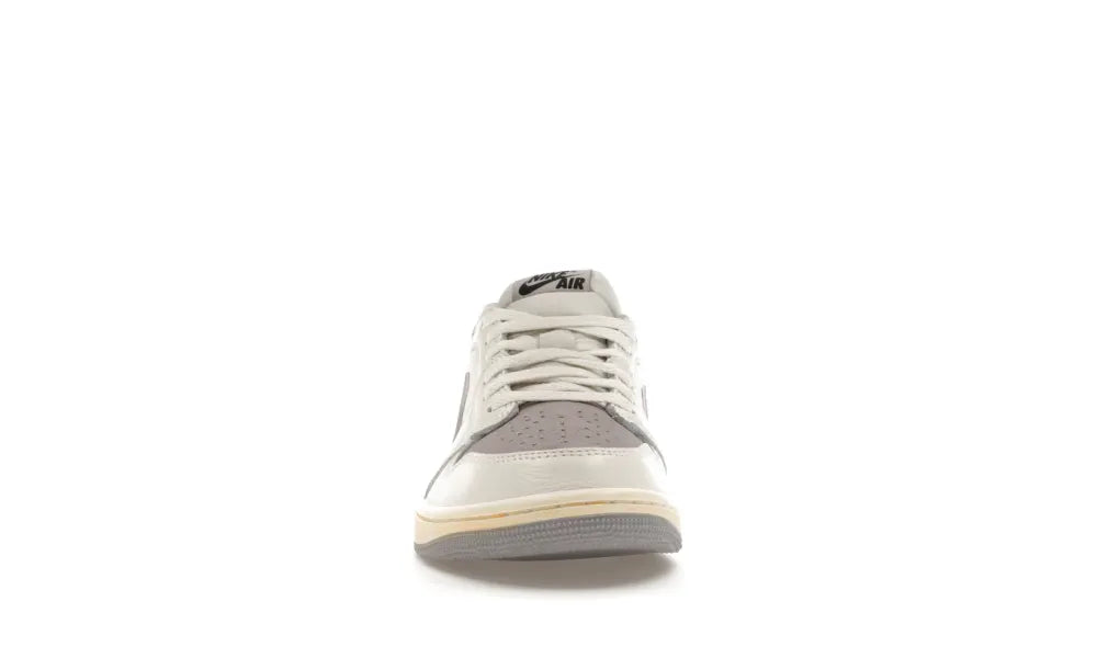Der Jordan 1 Retro niedrig OG Atmosphere Gray ist ein niedrig geschnittener, vom Basketball inspirierter Sneaker mit minimalistischem Design. Er ist aus hochwertigen Materialien gefertigt, darunter eine Mischung aus Echtleder und synthetischem Material.