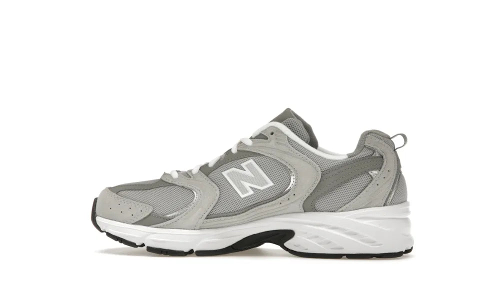 Der New Balance 530 regenwolkengrau führt das Erbe des ursprünglichen 530 fort, der 1992 auf den Markt kam. Er greift die klobige Silhouette des Performance-Sneakers auf und fügt ein Farbschema in Grautönen hinzu.