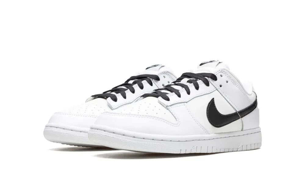 Der Nike Dunk Low Reverse Panda verfügt über das Nike Swoosh-Logo in Schwarz auf der Zunge und auch auf der Fersenpolsterung hinter dem Knöchel.